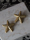 Boucles d'oreilles à puce  composées d'un soleil puis de deux  pièces en forme de rectangle et de trèfle